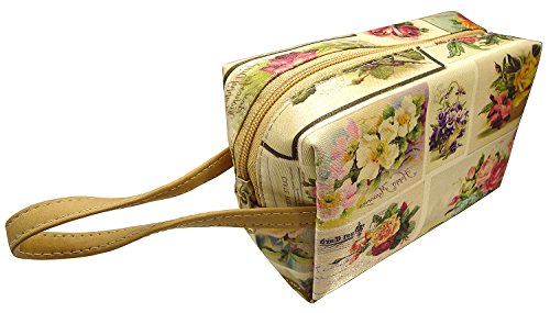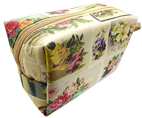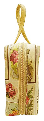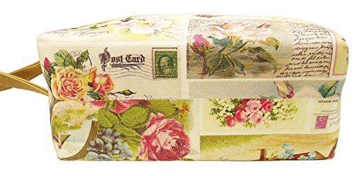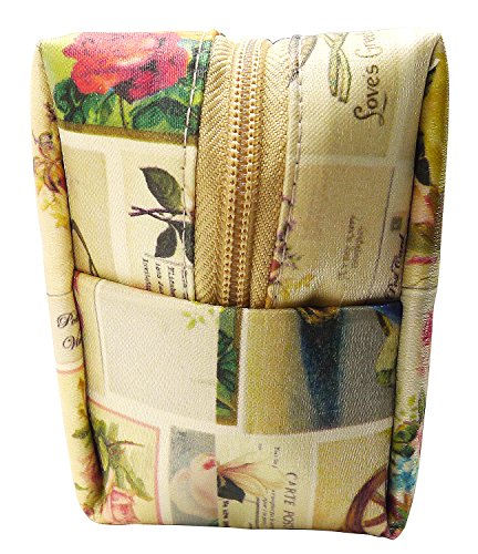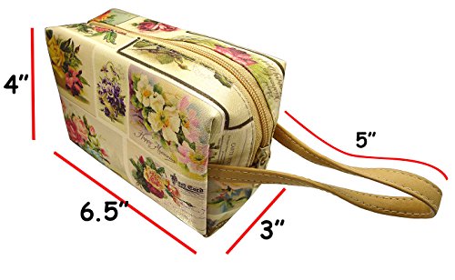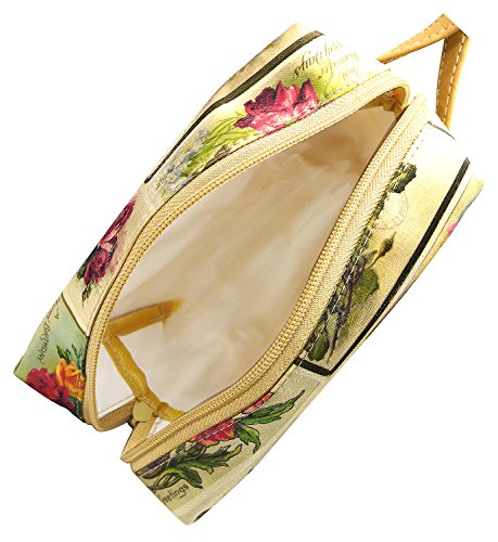 BDJ Printed Italian Silk Canvas Cosmetic Toiletry Portable Rectangle Purse Pouch Bag
