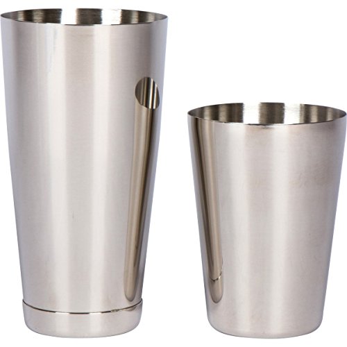 Boston shakers like this one are the style of shaker you will usually find behind high-end craft cocktail bars. They typically provide a better water-tight seal than cobbler shakers, and will not freeze shut when shaken with ice. Use them with a hawthorne or julep strainer and you'll find they provide a cleaner, dripless pour.