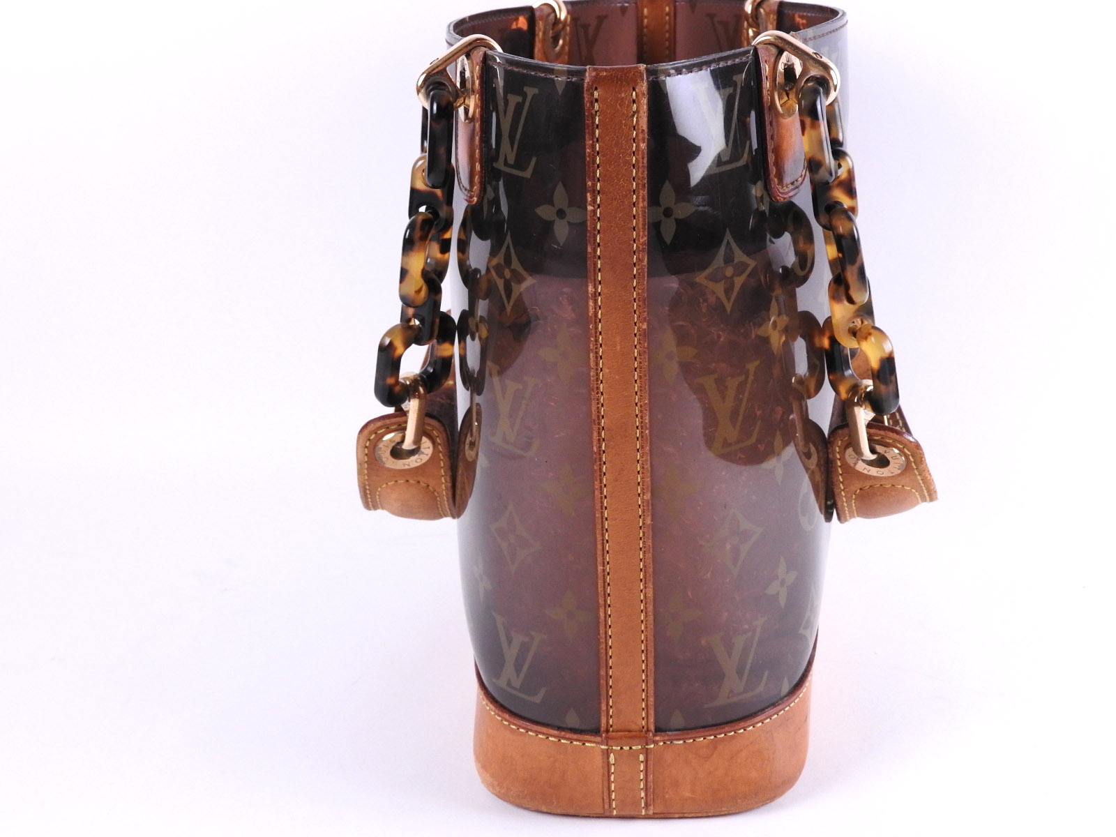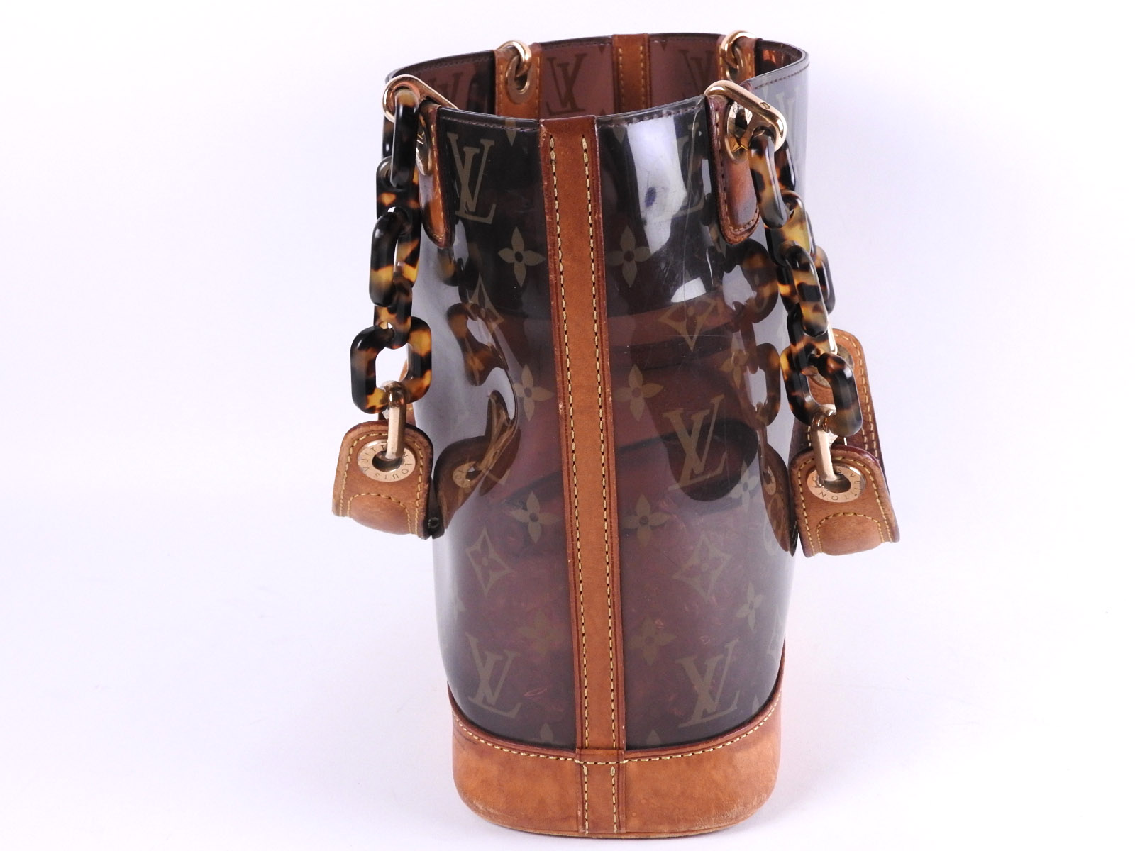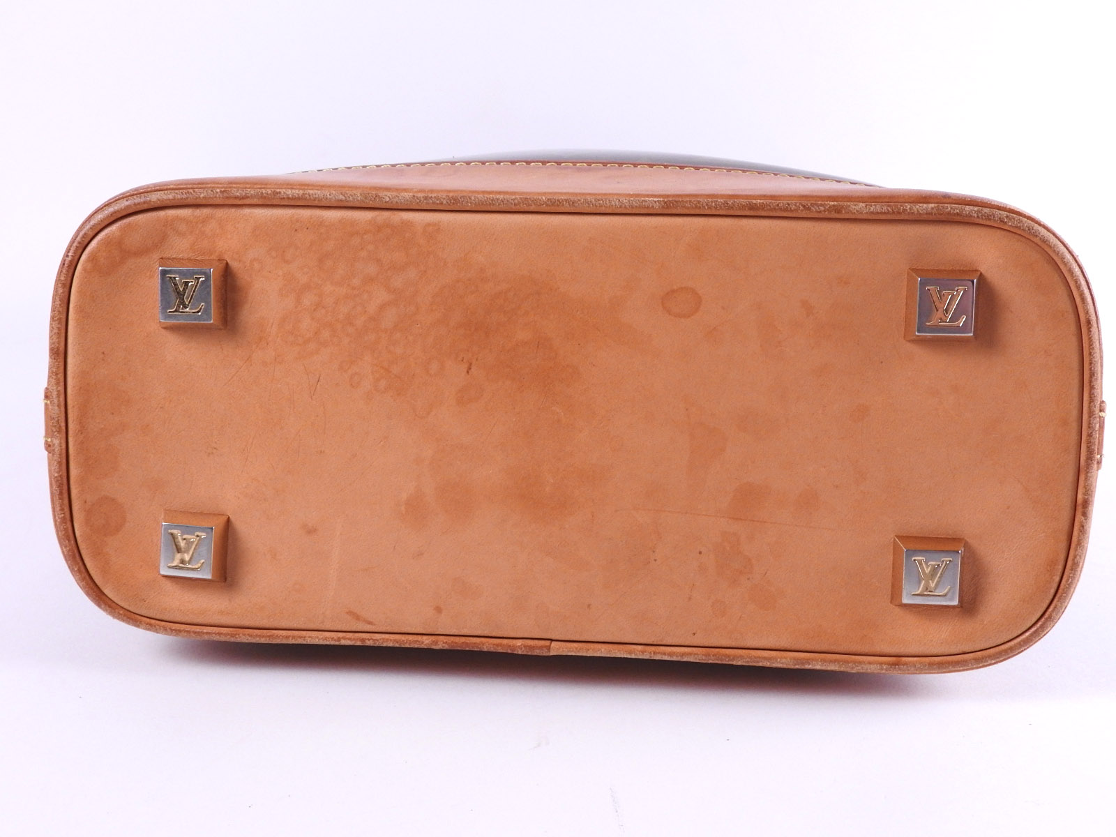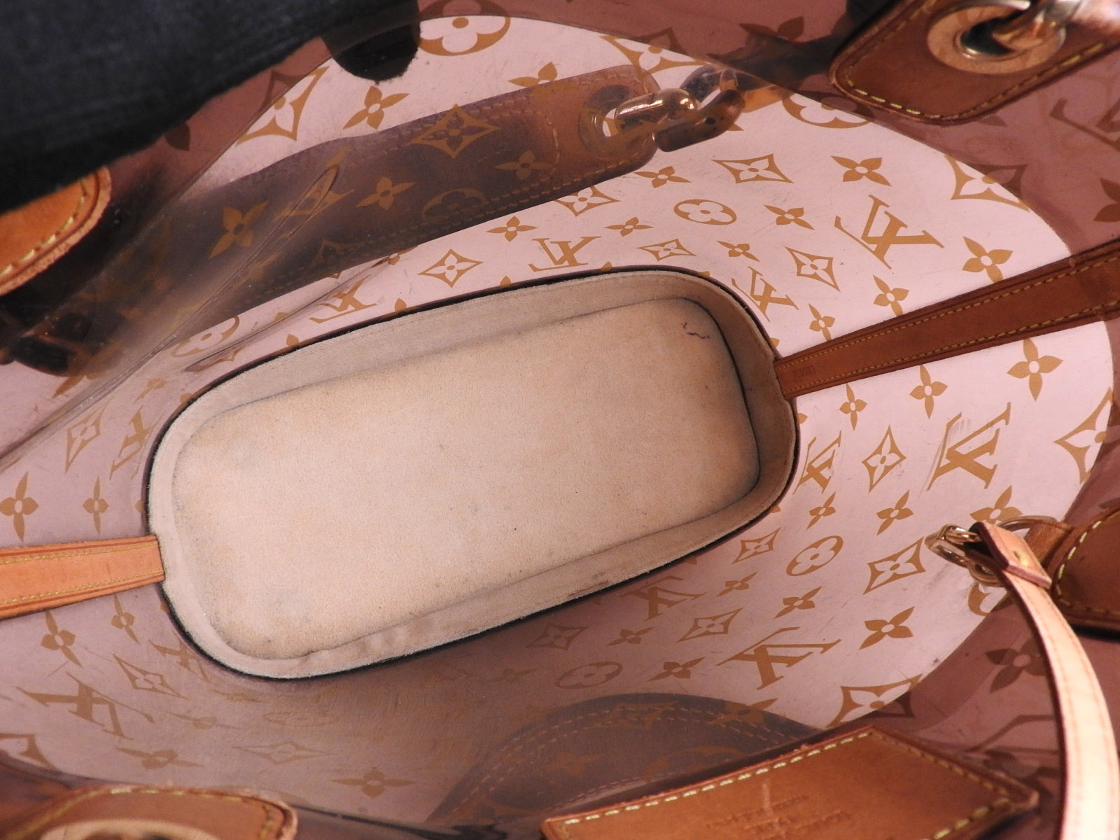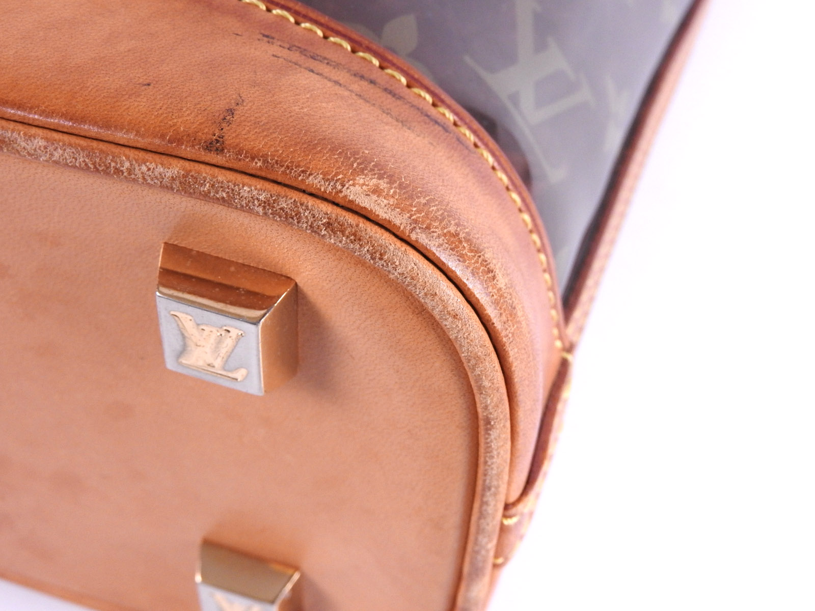 Monogram Vinyl: Used feeling. Scratches and stains. Leather: Fairly used feeling. Fairly stained. Some scratches, scuffs and tanning. |