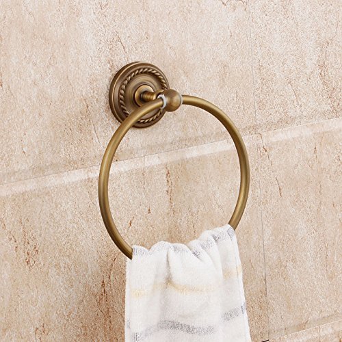 Ollypulse Solid Brass Wall Mount Bathroom Bath Accessory Towel Circle Holder Ring, Antique Brass Finish
