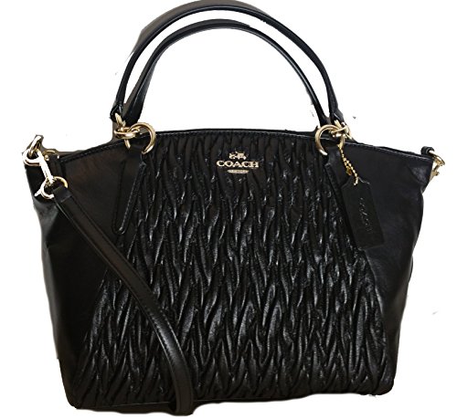 -. Brand : -. Color : Black -. Department : womens -. EAN : 0889532074150 -. Feature : Twisted gathered leather / Inside zip, cell phone and multifunction pockets / Approximate measurement 13 1/2" (L) x 8 1/2" (H) x 3 1/4" (W), handles with 5 1/2" drop / Zip-top closure, fabric lining, Longer strap included for shoulder or crossbody wear / Inside a zip pocket shows the serial number in white small tag -. Model : F37081 IMBLK -. PackageQuantity : 1 -. ProductGroup : Shoes -. ProductTypeName : HANDBAG -. Size : Small -. Title : Small Kelsey Satchel in Black Gathered Twist Leather F37081 -. UPC : 889532074150