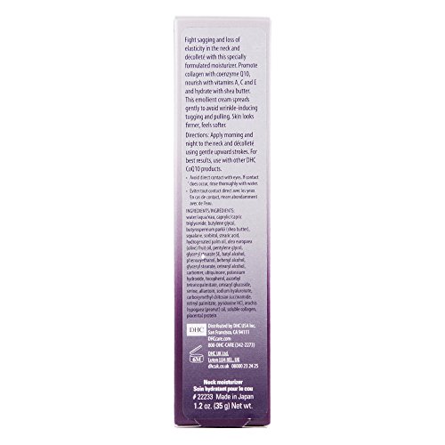 Firming DHC coq10 neck cream helps improve the tone and texture of your neck and décolletage with moisturizing botanicals, a trio of vitamins and age-defying super-antioxidant coenzyme q10. This velvety, emollient-rich neck care essential diminishes the looks of wrinkles, hydrates and fights damaging free radicals for younger-looking skin. Don't let your neck give away your age.Feature