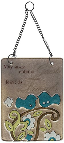 Perfectly Paisley Friends Hanging Glass Plaque, 6 by 8-Inch, May All Who Enter As Guests Leave As Friends