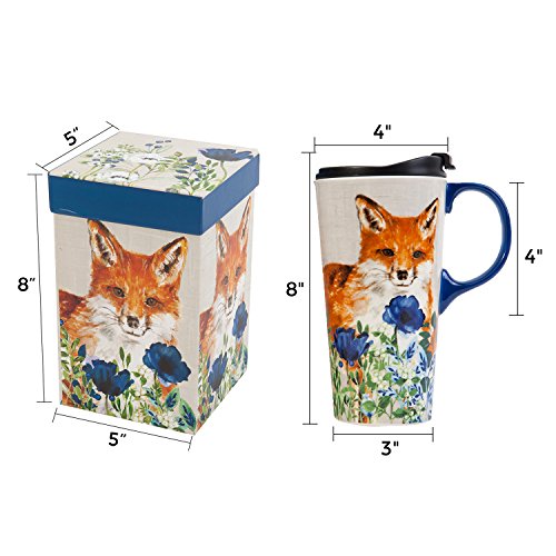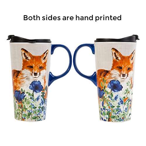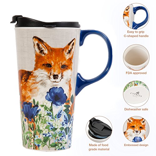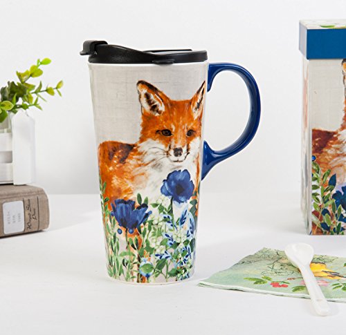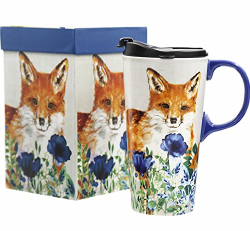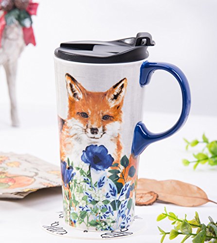 Travel Coffee Ceramic Mug Porcelain Latte Tea Cup With Lid in Gift Box 17oz. Cute Fox by CYPRESS