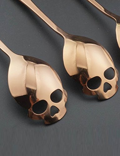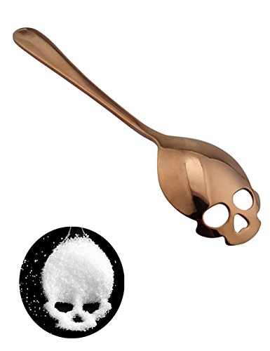 Cool and stylish design, ideal gift for spoon collectors who are obsessed with skulls.The openings for eyes and nose make it easy to shake off excess calories in a teaspoon of sugar; Perfect for tea and coffee stirring; Can also be used as dessert spoon and absinthe spoon.