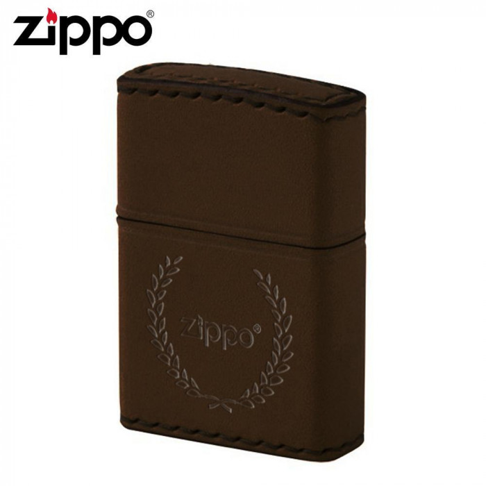 ♯200ベースに牛革を巻いたZIPPO。月桂樹とロゴマークがワンポイントになっています。全て本革を使用しており、職人が一つ一つ丁寧に手縫いをしています。 |