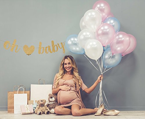 Studio : CC Party Co. Publisher : CC Party Co. Binding : Health and Beauty Product Description Add shine to your party with our gold glitter cardstock "Oh Baby" banner. A sparkly gold and silver glitter cardstock heart adds a special touch. Perfect for your or your bestie's baby shower, gender reveal, pregnancy announcement and more. Cursive letters are made from low-shed, glitter cardstock and vary in size from 4"- 5.5" tall. Back of letters are white, and easy to string onto the included twine. The banner spans approximately 2.5' in length with no card spacing. Gold metallic twine is 8' long to allow for versatile hanging. 0