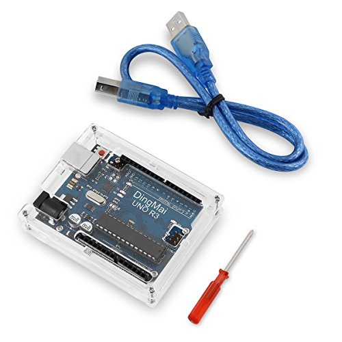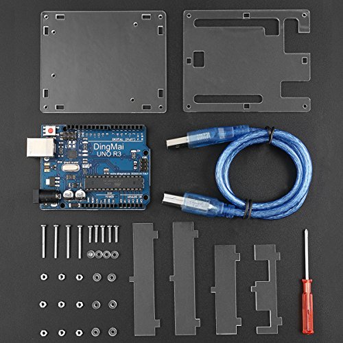DingMai UNO R3 Development Board ATmega328P with Case Enclosure Transparent Clear Computer Box & Screwdriver & USB Cable Compatible With Arduino UNO R3