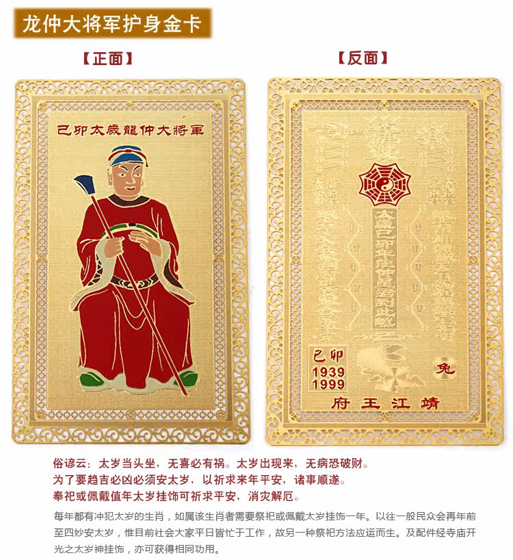Proverb cloud: I pledge to sit no Hi there will be trouble. I have nodisease fear of losing. In order to tend Ji will be fierce must be old to pray for the coming year is safe prosperous. In memory or wear valueyears Taisui ornaments can pray for peace peace solution. There areoffend in the year such as the zodiac requires sacrifice or wearing a year old ornaments. The general public will then years ago to four andan old but at present we are busy working on the society so anothermethod of sacrifice emerge as the times require. And accessories byJupiter Temple dedication of God ornaments, can get the same function.According to China traditional folk belief, every year there is a God in all things in the world. Who the gods called Tai sui. Tai Sui Shengjuncommonly known as Jupiter or old gentleman who is in charge of humanweal and woe. Tai Sui Jun sixty each according to the heavenly gods