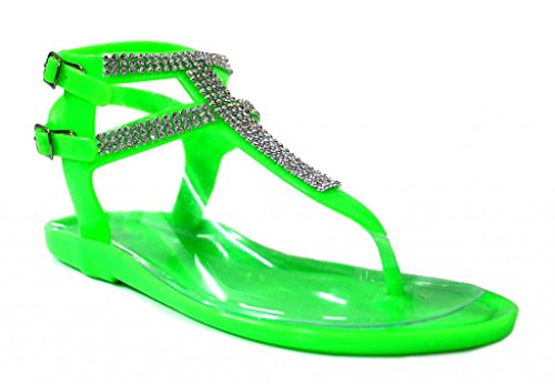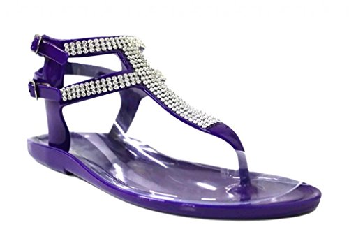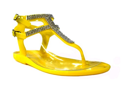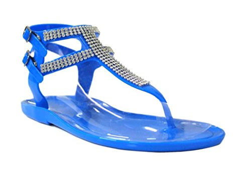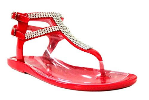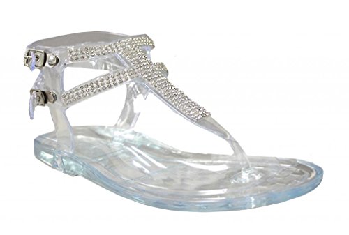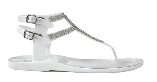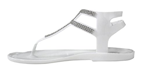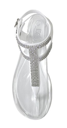 Kali Footwear Women's Clara Jelly T-strap Rhinestone Flat Gladiator Sandals 10,White