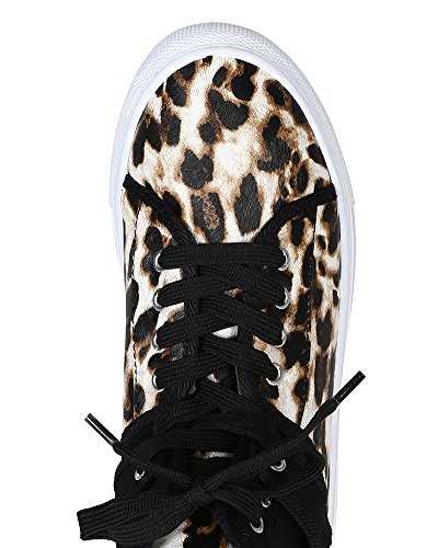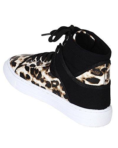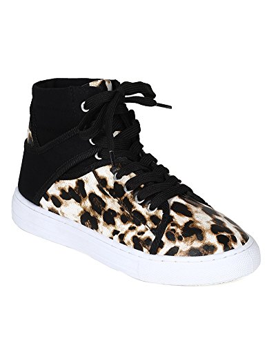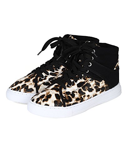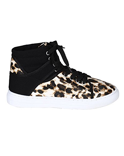 Qupid BH25 Women Mix Media Pony Hair Leatherette Lace Up High Top Fashion Sneaker - Camel Leopard
