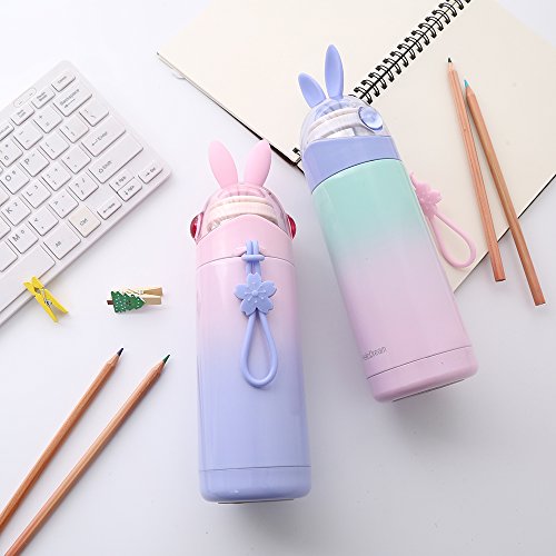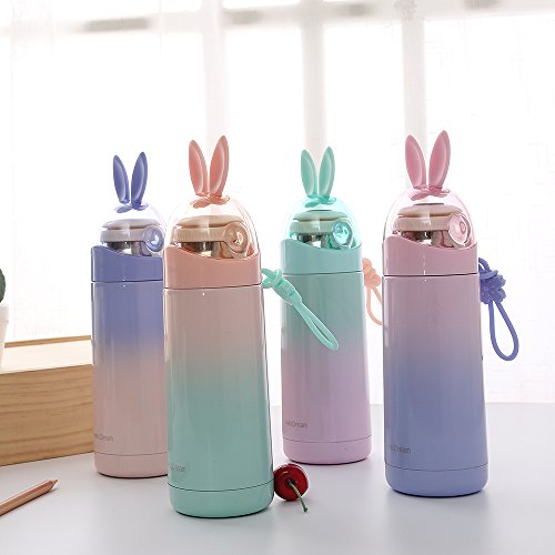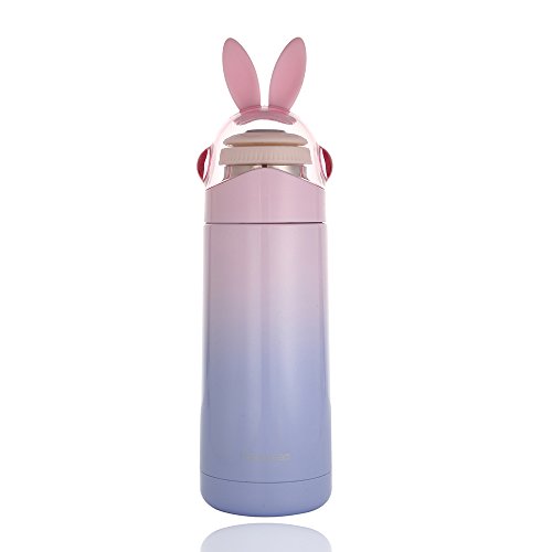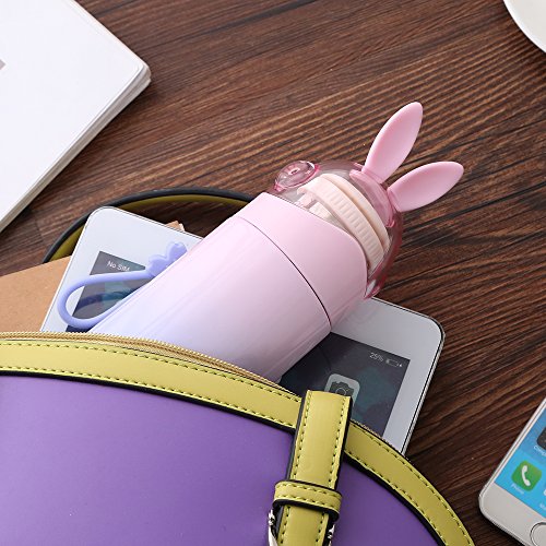 - FASTION STYLE - Lightweight design(capacity:350ml, weight:8.65oz), cute appearance of rabbit! Specially designed leak-proof&bpa-free cap prevents any spills, wide mouth (1.6") opening for ice cube insertion and easy to drink, the colorful coating is hard to come off! This is an excellent choice for people who work in offices or perhaps who do lots of travelling, and for kids to carry around!