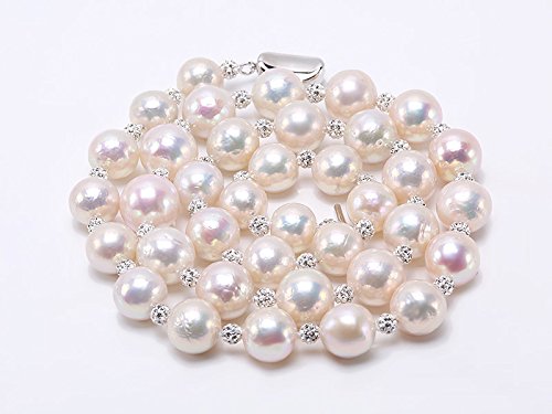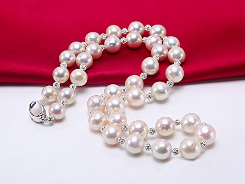 Gorgeous single-strand 10-13mm white round Edison pearl necklace with round shape, smooth skin, and strong lustre