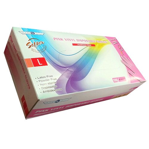 (Clean Safety)/Household Supplies/Household Cleaning/DIRECT FROM USA/Clean Safety - Pink Vinyl Powder Free Disposable Gloves 100/Box - X-Large