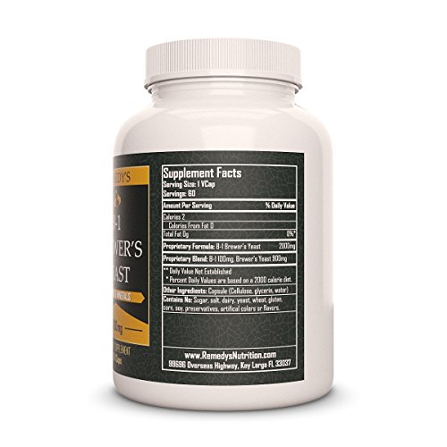 -. Title : B-1 Brewers Yeast Remedys Nutrition MEGA STRENGTH Organic Vegan 1000 mg / 60000 mg per bottle VCaps