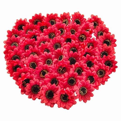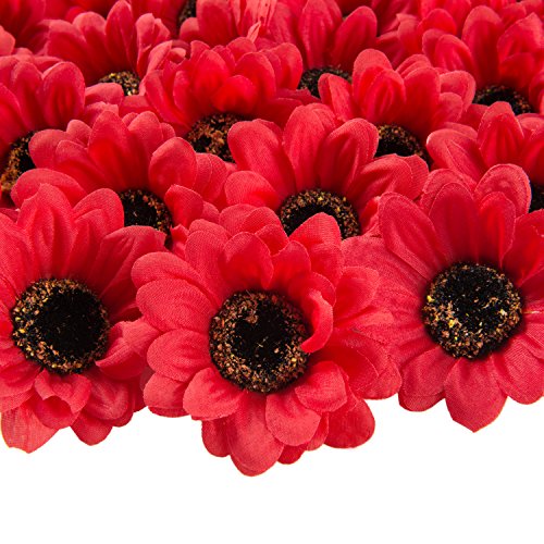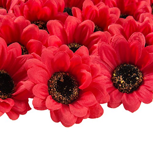 Artificial Silk Sunflower for DIY Work Home Wedding Party Decor Pack of 50 (Red)