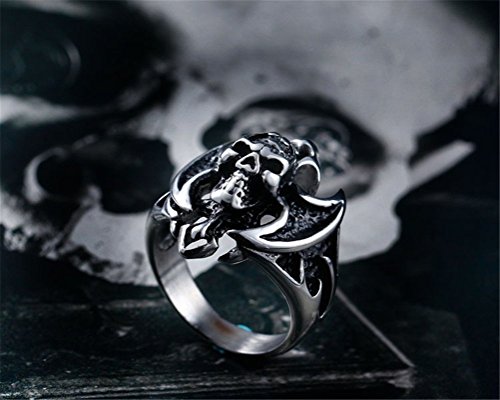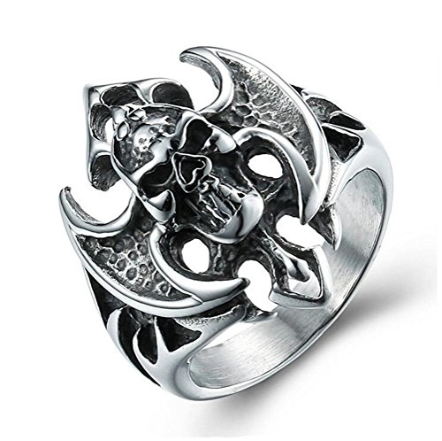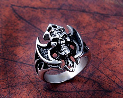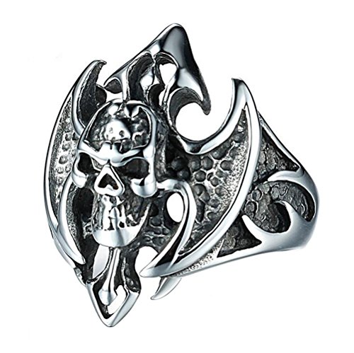 -. Title : HIJONES Men's Stainless Steel Vintage Evil Skull Ring Silver Black