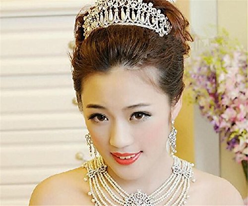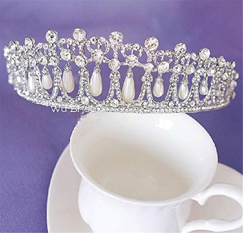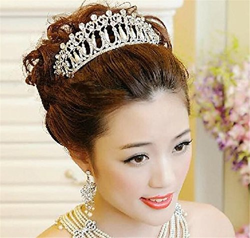 Lefox Wedding Bridal Crystal Pearl Headband Crown Tiara Diana Hair Accessories Silver#23
