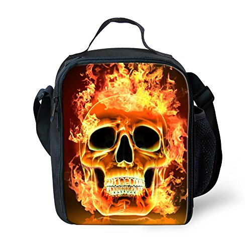 Coloranimal Fire Skull Print Thermal Lunch Box Kids Insulated Tote Bag