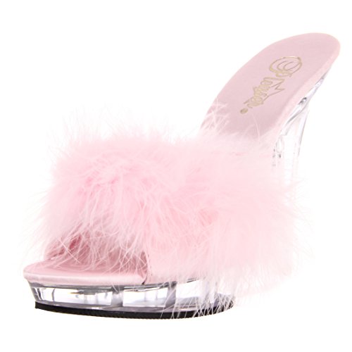 LIP-101-8, 5" Slipper Baby Pink Marabou Fur/Clear