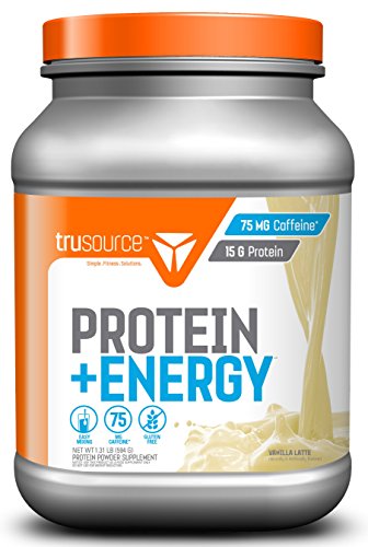 trusource 27 Servings Protein + Energy Powder with Whey Concentrate, Vanilla Latte, 1.31 Pound