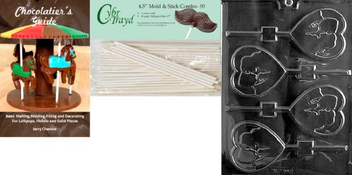 Cybrtrayd 'Silhouette Lovers Lolly' Valentine Chocolate Candy Mold with 50 4.5-Inch Lollipop Sticks and Chocolatier's Guide