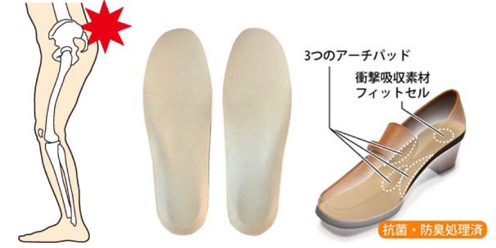 Moreover, we adopt "shock absorbing material fit cell" in heel part, absorb shock at walking and drastically alleviate shock to lumbar region.