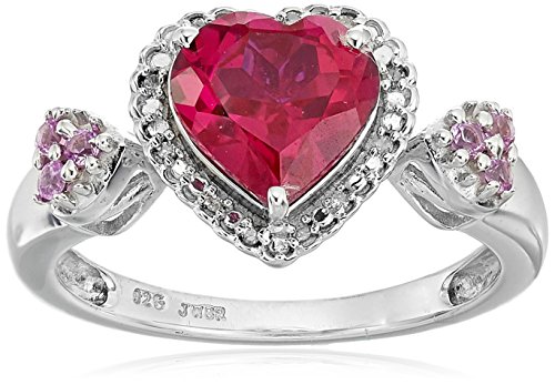 Sterling Silver Heart Created Ruby with Created Pink Sapphire and Diamond Ring, Size 7