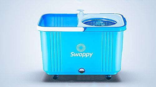 SWOPPY DOUBLE SPIN MOP DELUXE WITH STAINLESS STEEL BUCKET WRINGER & TWO MICROFIBRE MOP HEADS, BEST SPIN MOP 360 SPINNING MOP, 2 YEAR WARRANTY! PERFECT SYSTEM FOR FLOOR CLEANING.
