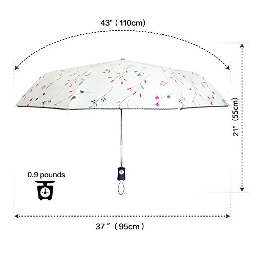 HIGH QUALITY CANOPY CONSTRUCTION: Our Automatic Windproof Umbrella is made from high quality 190T Pongee fabric (which is a soft woven cloth,and Contains four color flower patterns) ; It Is Also Highly Water Repellent .Our Automatic Windproof Umbrella is made from high-strength Stainless steel shaft and frame(which is Mold And Mildew Resistant. Anti-Corrosion Electroplated Frame To Prevent Rust). It is very sturdy, durability and tested for 4800 times