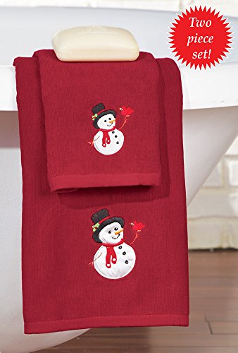 Studio : Collections Etc Publisher : Collections Etc Product Description Embroidered Holiday Snowman Towel Set Description A smiling snowman on a bright red background brings a charming and festive touch to your home during the holidays. The embroidered snowman has a carrot nose and wears a holly decorated hat and red scarf. The set includes a hand towel and washcloth. Machine wash. 100% cotton. Hand towel: 28" x 16", washcloth 18" x 11". Our fabulous home accessories can change any bathroom from 'just another room' to something special. Whether you want to add a few little touches or completely change your washroom's look, Collections Etc. has the lovingly crafted items you need to make bathroom decorating easy and enjoyable.