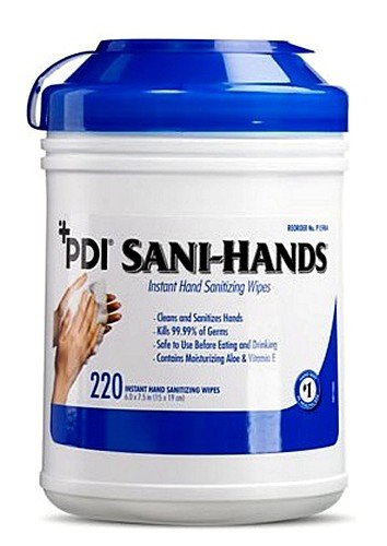 PDI Sani-Hands Antimicrobial Alcohol Gel Hand Wipes Canister 6"X7.5" 220 Each / Canister