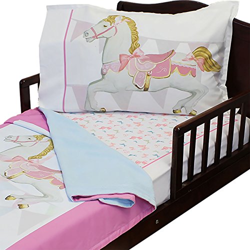 Darling Carousel 3pc Toddler Bedding Set Horses Blanket Sheet and Pillowcase Set