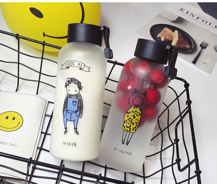 韩国可爱玻璃杯便携清新水杯韩版男女学生创意随手杯子大容量