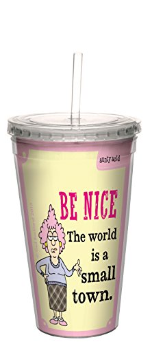 Tree-Free Greetings 16-Ounce Double-Walled Cool Cup with Reusable Straw, Aunty Acid Small Town (CC98606)