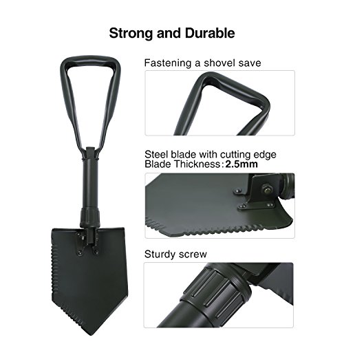 Easy to Carry - Folds, small size, foldable with a carrying pouch with a loop so the camping shovel folding may attach to a belt or backpack.