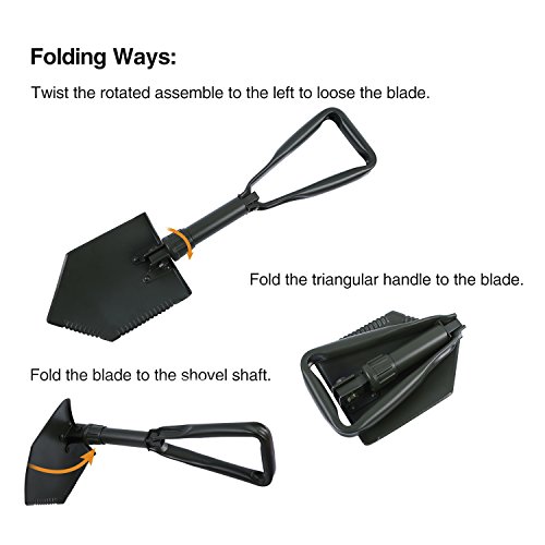 Features on e tool shovel for better using experience, all in this convenient folding shovel included: Shovel Board, Saw.