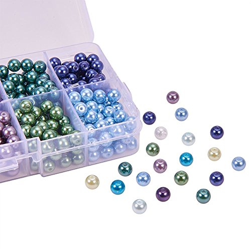 Beadthoven 1Box Mixed Style 8mm Round Glass Pearl Beads, Dyed, Loose Beads for Christmas Jewelry Making or DIY Crafts, Mixed Color