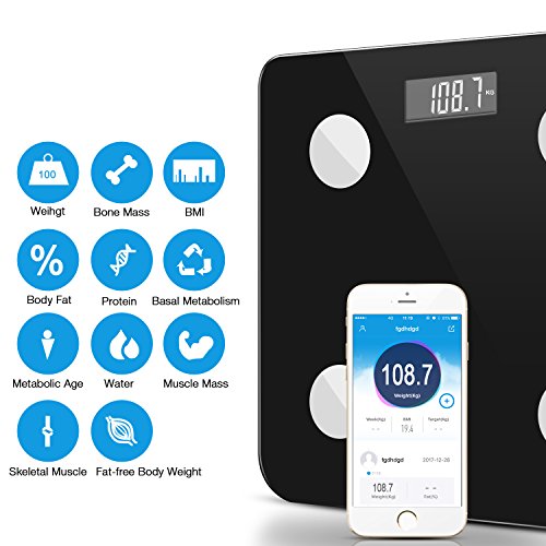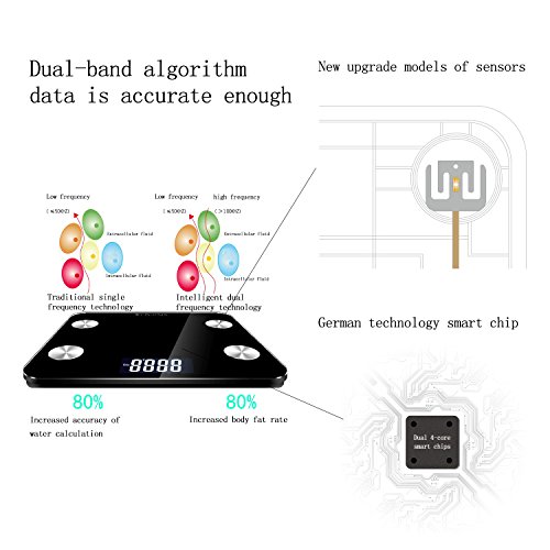 Studio : Gloria JR Publisher : Gloria JR Binding : Health and Beauty Product Description Body Fat Scale Using BIA bio resistance measurement technology, providing 20 Selected Data To Help You Focus On Fitness To Lose Weight Why do you need a Body fat Scale? Health does not just depend on your weight. Whether you want to lose weight or keep Shape and Fitness, weight is not the only factor that needs concern. You should pay more attention to your body fat, water and muscle mass. But this information cannot be provided by a traditional weight scale. Why The Gloria JR Body Fat Scale is your best choice? *Accurate measurement *Durable and Top Hight Quality *Intelligent and efficient Easy to use *4 core "CPU" Specifications 6mm Tempered Glass Platform Weight Capacity: 180 kg / 400 lbs Graduation: 0.1 kg (0.2 lbs) Weight Units: kg / lbs Powered:2*AAA Batteries Operating system: Android 4.3 or iOS7.0 above Interface Type: Bluetooth Working distance: 10 M Maximum Weight Recommendation: 180 KG Dimensions: 290 x 260 x 20mm Weight:1.5 kg Package Includes 1 x Body Fat 2 x AAA batteries 1 x User's manual Inch Tape Measure:150cm/13mm 0