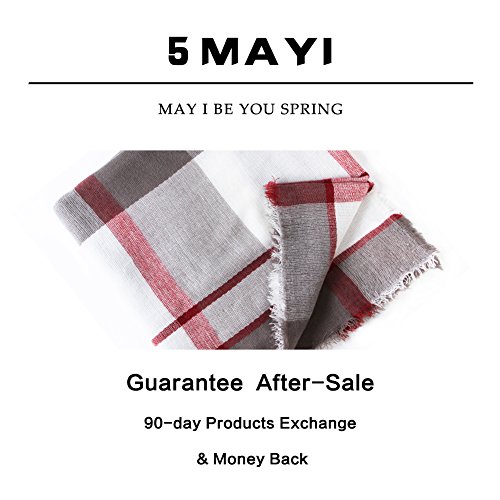 5Mayi- May I Be Your Spring 5Mayi is an American brand , a brand specialized in clothing, scarf and underwear. 5Mayi- Get Ready To Cozy Up In This Winter Holiday Season Our blanket scarf is very soft with unique and trendy patterns. Timeless and classic plaid scarf A warm scarf in winter; Oversized enough to be a blanket scarf shawl wrap. Great addition to your fall and winter wardrobe. ? 5Mayi- Plaid Blanket Scarf Detailed Information 1.Material:?100% Acrylic,soft and close to the skin, Soft Cashmere-like Acrylic. 2.Trendy style:Designed in multiple colors and styles, plaid checked oversized long scarf. 3.Size: Oversized Blanket Scarf : Length- 59" x Width- 59" 4.Do not machine wash,Hand Wash Separately in Cold Water.? 5.Package: One scarf in a package. The scarf is sealed packaging, so there will have wrinkles. 6.Please wash it after receiving the goods. The effect of the scarf will be better. 5Mayi---Guarantee?Efficient?After-Sale?Service Promise?90-day?Products?Exchange?and?Money?Back? Please?contact?us?once?you?meet?any?problems with underwear or our service We?commit?that?customers?first?all?the?time