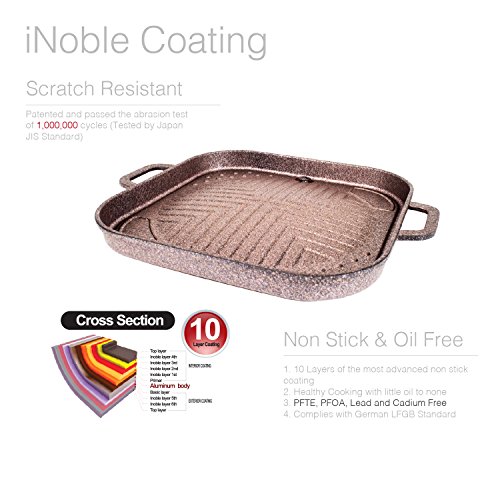 INOBLE COATING - Our grill is coated with most loved Advanced Non Stick coating in France, Germany, Japan, Korea and USA. Highly reviewed than teflon and all other Non-Stick coating brands