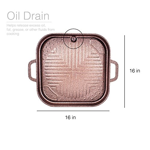 Whether you're going for an authentic KBBQ experience or just an easy vegetable dish, the Alpha Stove Top Smokeless Grill is the perfect fit for you. Coated with iNoble Non-Stick coating, our grill is trouble free, easy to clean, and non-stick. Additionally, this coating pushes even heat coverage, giving you a heated surface with no inconsistencies. With our exclusive non-stick coating, this grill eliminates the need for excessive amounts of oil while cooking. Along with these features, the Alpha Stove Top Smokeless Grill includes a drain for draining off oil or fat if desired. Safe, sturdy, and durable, our Stove Top Smokeless Grill will give you the grilling experience that you want.