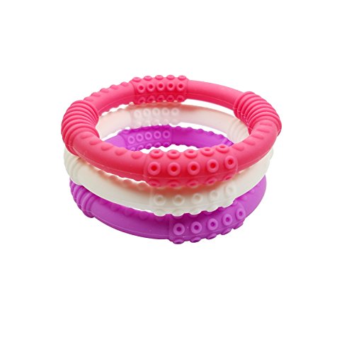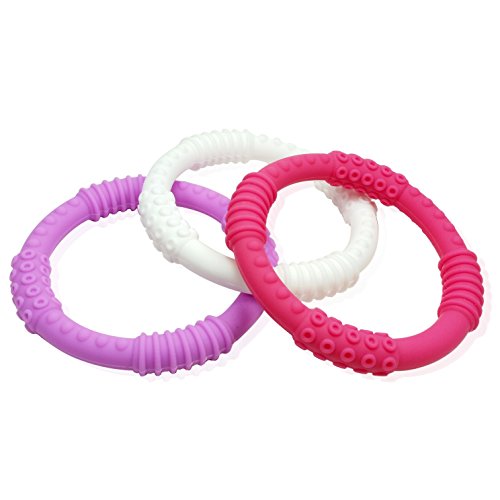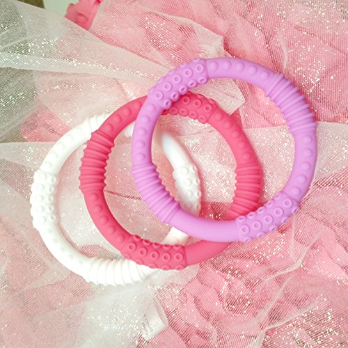 Teething Ring 3 Pack - mooi baby - Baby Teething Rings - GIRL Baby Teether - 100% Silicone Infant Teether - No BPA - Non-Toxic - Soothing Gums - Teether...