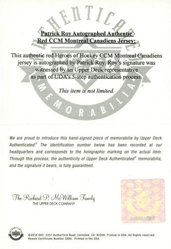 Patrick Roy Montreal Canadiens Autographed Centennial Red Jersey - Upper Deck - Fanatics Authentic Certified