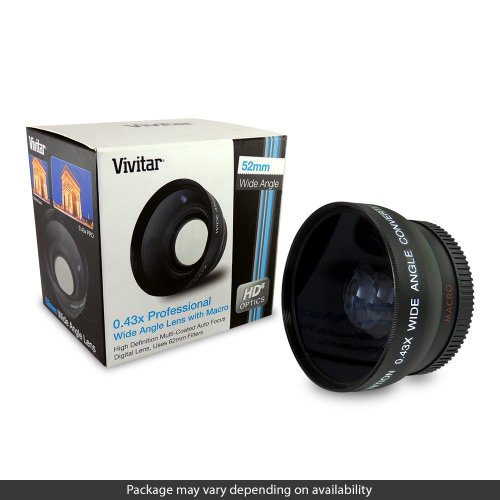 - Brand New Vivitar 52mm 0.43x Wide Angle Lens with Macro Portion - This wide angle lens attaches to most cameras, camcorders and lenses with 52mm filter threads. Among the many makes whose products it fits are; Sony, JVC, Olympus, Canon, Nikon and others. - Lens back thread size: 52mm. Also has front threads of 62mm (for attaching filters or hoods of 62mm.) - 2-in-1 This wide angle lens features a detachable macro lens for close-up, high detail photography. Attach the macro portion to your standard lens to take sharp pictures as close as 50mm from the subject (perfect for flowers, coins, insects, etc.). - When choosing a wide angle lens, remember; the smaller the number, the wider the angle. For instance a 0.18x is considered a super fisheye lens (notorious bubble effect) and a 0.5x is considered just a wide angle lens. This particular lens 0.43x has the best of both lenses and is considered a super wide angle lens with a soft fisheye effect. Great for every type of photographic situation. - Premium MagicFiber® Microfiber Cleaning Cloth - Ultra gentle! Extremely fine microfiber leaves zero scratches, streaks or marks. Safe for all lenses. - Features special saw tooth pattern edges. Other sellers' cloths have unfinished edges that will fray easily, the weave becoming undone and threads pulling out easily. Our microfibers are made with premium materials and designed to the highest standard of quality. - Clean without the need of soaps or detergents. Wipe down kids' toys, cribs, stainless steel counters and other areas you want to keep chemical free. - Great value for your money. Reusable and long lasting. No more paper towel and tissue waste. - Extremely handy! Keep one in your office, home office, laptop bag, camera bag and car. - Size: 6 x 7 inches (15cm x 18cm)