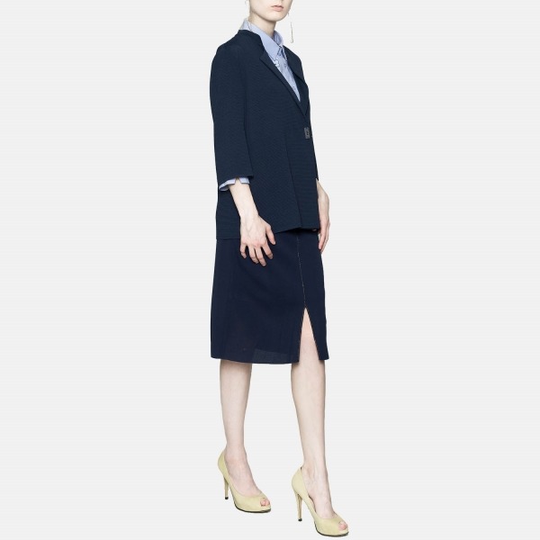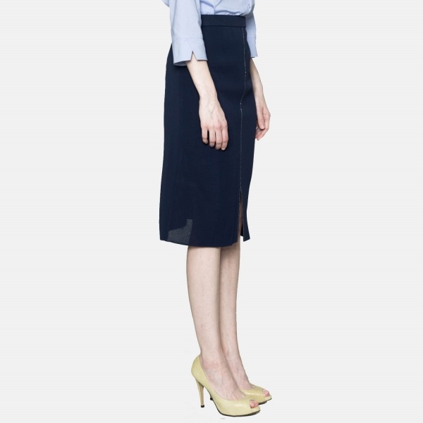 세밀하고 촘촘하게 짜여진 니트 조직이 돋보이는 H라인 스커트입니다. 전면에 볼체인을 넣어 움직임에 자연스러운 포인트가 되며, 웨이스트 라인은 밴딩으로 처리하여 편하게 착용 가능한 아이템입니다.