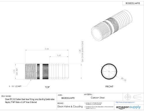 Dixon STC1510 Carbon Steel Hose Fitting, Jump Size King Combination Nipple, 1" NPT Male x 1-1/4" Hose ID Barbed
