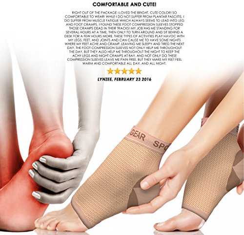 WALK, WORK IN COMFORT - remarkable Foot Sleeves Pair that give all day relief limiting Plantar Fasciitis foot and heel aches. The ankle support features oedema level compression on the bottom of the sleeve helps relieve splint pain by compressing the plantar fascia ligament. Thin design allows to be worn all day or night helping relieve fasciitis . Whether wearing Taping, Inserts, splints supports, orthotics, Orthopedic shoes, you will enjoy a comfortable Sleeve no matter the circumstances