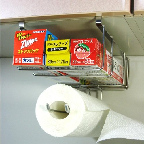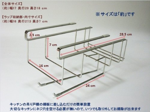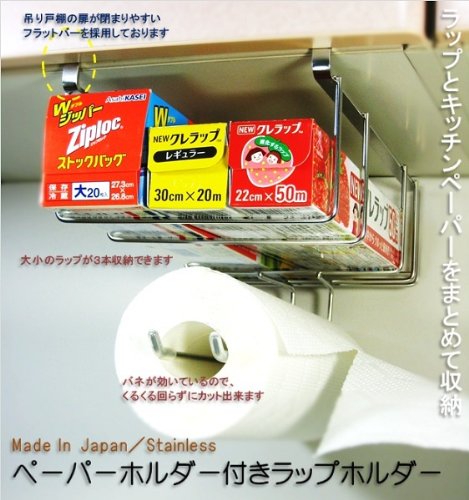 Wrap holder & Kitchen paper holder (with one hand cut) slim 17cm width 18-8 stainless steel drilling unnecessary screwing unnecessary made in Japan