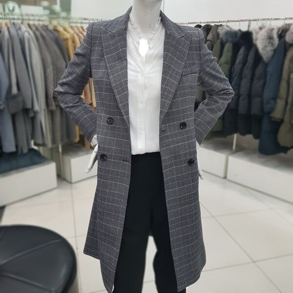 더블 투버튼 롱 자켓 입니다자연스럽게 허리라인이 들어가슬림해 보입니다슬랙스, 블라우스와 함께 오피스룩으로데님팬츠,티셔츠와 함께 데일리 룩으로 연출해보세요~